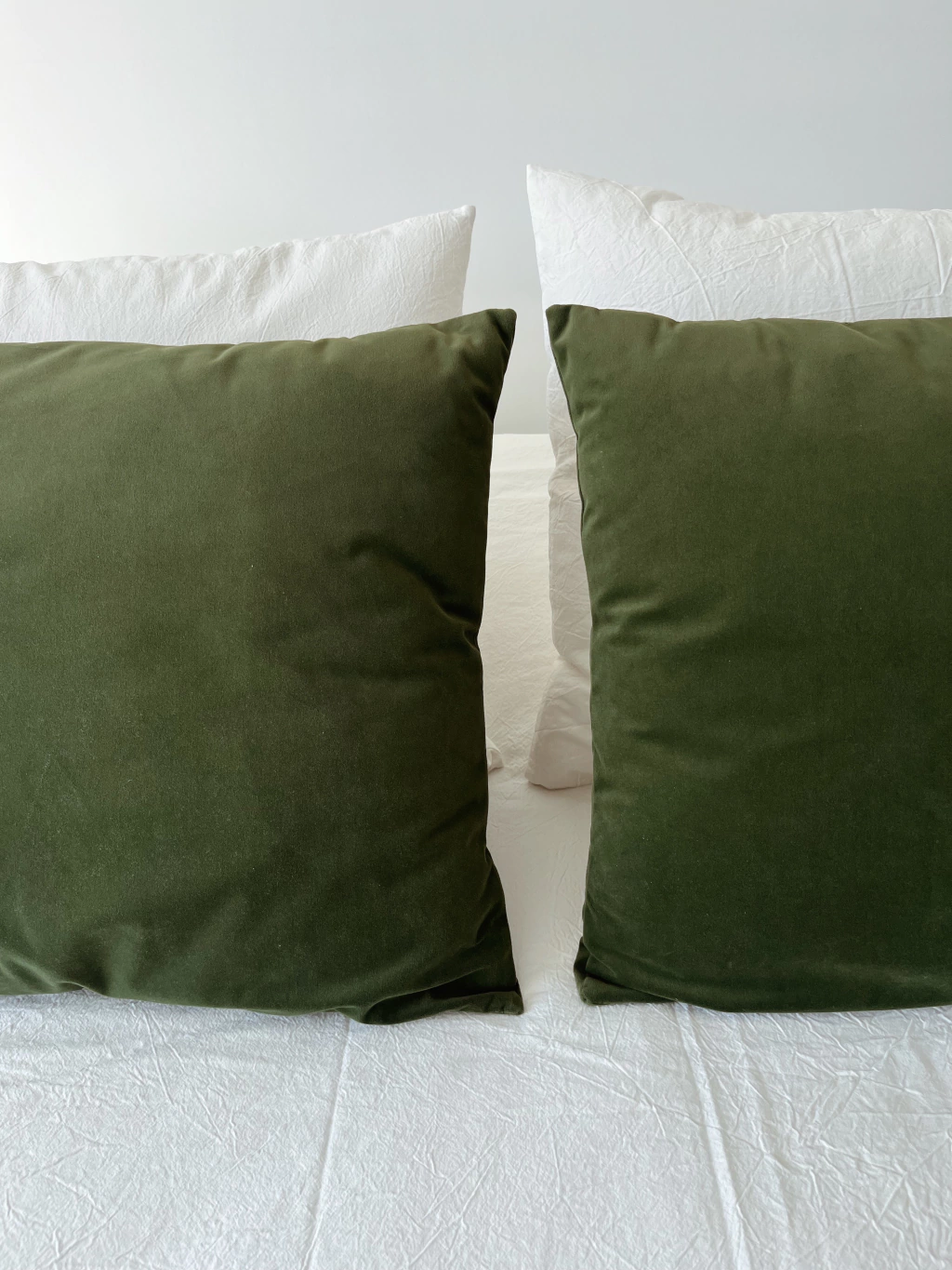 Almohadón relleno de vellón siliconado, con funda desmontable confeccionada artesanalmente en terciopelo verde botella. Mi funda viene con cierre escondido en solapa. 100% poliéster.
