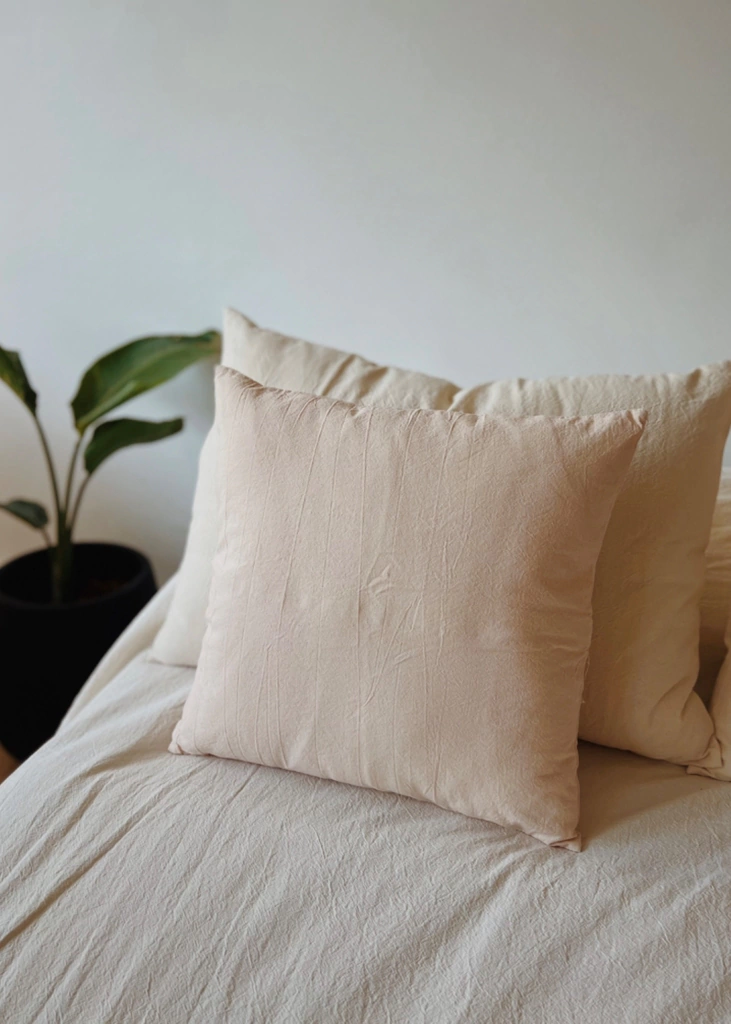 Almohadón cuadrado relleno de vellón siliconado, con funda desmontable confeccionada artesanalmente en lienzo 100% algodón. Mi funda viene con cierre escondido en solapa.