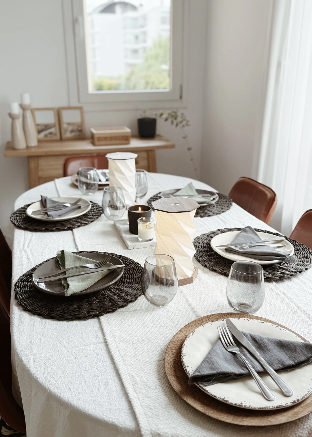 4 servilletas confeccionadas en gasa 100% algodón con terminación rustica desflecada.