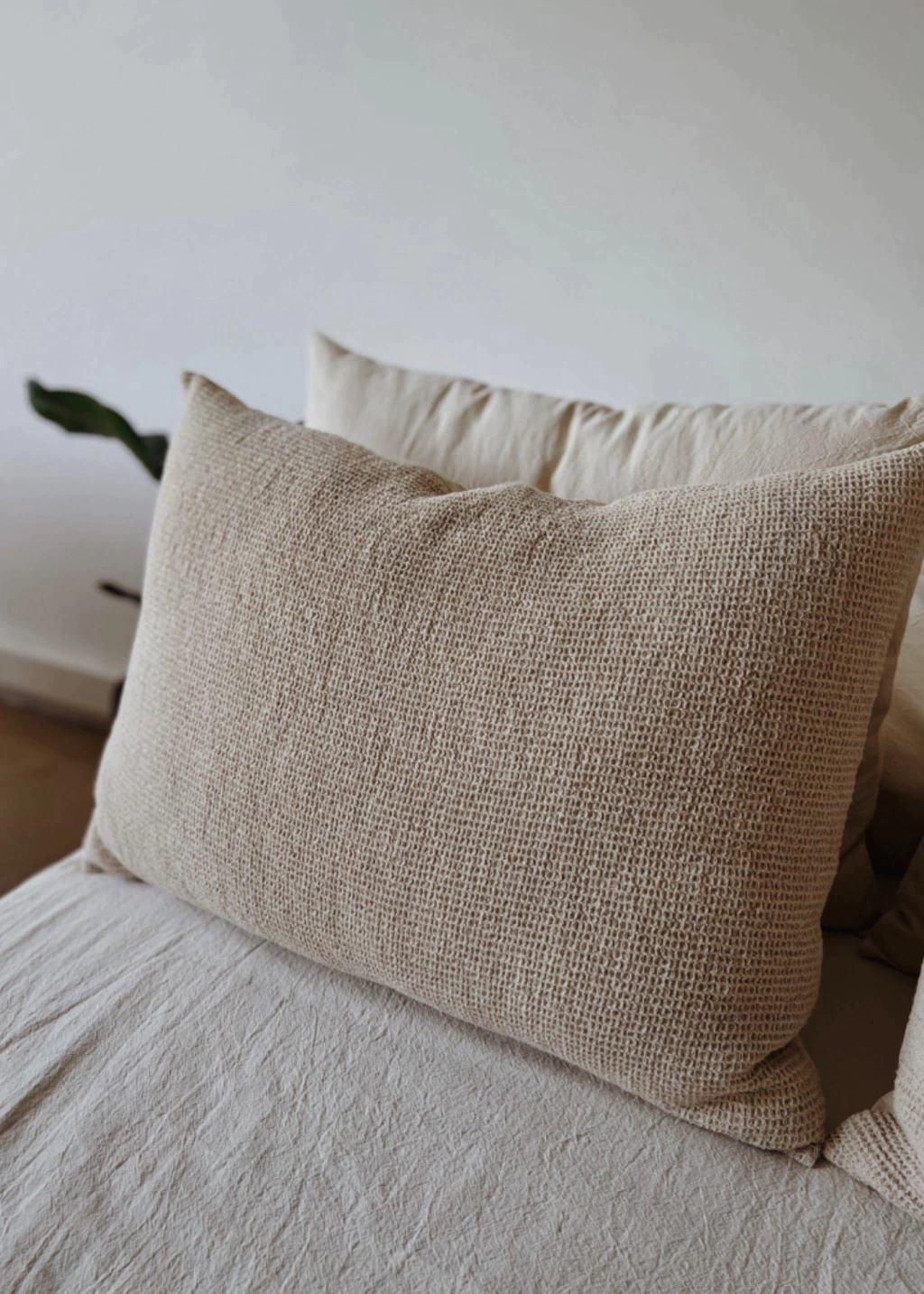 Si queres que te dure mucho, lavame en lavarropas pero siempre con agua fría. Evitá el agua caliente y el secarropas así no me encojo. Los rellenos de mis almohadones no se lavan.
